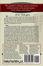 Whether you are simply curious, an avid card player, or someone interested in dabbling in the darker side of poker, Cheating At Texas Hold’em will be one of the most interesting and enlightening contributions to your game. In these pages you will encounter an unprecedented collection of research and innovation – a comprehensive project exploring the true threats specific to the modern texas hold’em table. Join sleight-of-hand/gambling expert John B. Born as he details exactly how cheating works, how to detect it, and how to prevent it. Cheating At Texas Hold’em pushes far beyond the basics, featuring many progressive cheating techniques and scams that have never seen print. Along with these, you will find modern applications and insights into the more familiar approaches (published as early as the 15th century) that have held their place in the cardsharp’s repertoire. Cheating At Texas Hold’em is a must have for the serious poker player. For less than it costs to play one hand, you can ensure a fair game by knowing what they know. Just a few of the topics include: