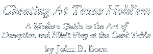 "Without a doubt it is one of the best books ever written about cheating at poker. It is a book that every poker player and magician should have in their library" “First glance showed that not only had a great deal of research been done, but that John has some cunning and extremely original ideas specific to Texas Hold’em. At a further glance, I was pleased to find it was a wonderful read – a real bible of not only how to cheat, but also sage advice on what to look for to avoid being cheated!” "Through the years, there has been only a few high quality books written on cheating at poker. John has published what will be considered a landmark on the subject of Cheating at Texas Hold'em.” “Finally a book about card cheating written so non-cheaters can easily learn, understand and protect themselves. Full of the latest secrets on how to cheat at Poker. A terrific book, highly recommended.” "John has compiled a truly impressive collection of cheating strategies. What I found most fascinating is the new and original developments for Hold’em and even online poker games. We're lucky he's on our side!" "An encyclopedic masterwork. It's depth and scholarship merits a PHD in card table connivery." "If you're interested in Hold'em and the associated Oceans Eleven tomfoolery, this handsome volume will probably serve you well." "I really like this book! If you play Texas Hold'em and you're interested in learning how unscrupulous scoundrels can sneakily separate you from your hard-earned green, the implied odds dictate that you buy this book. Highly recommended." |
